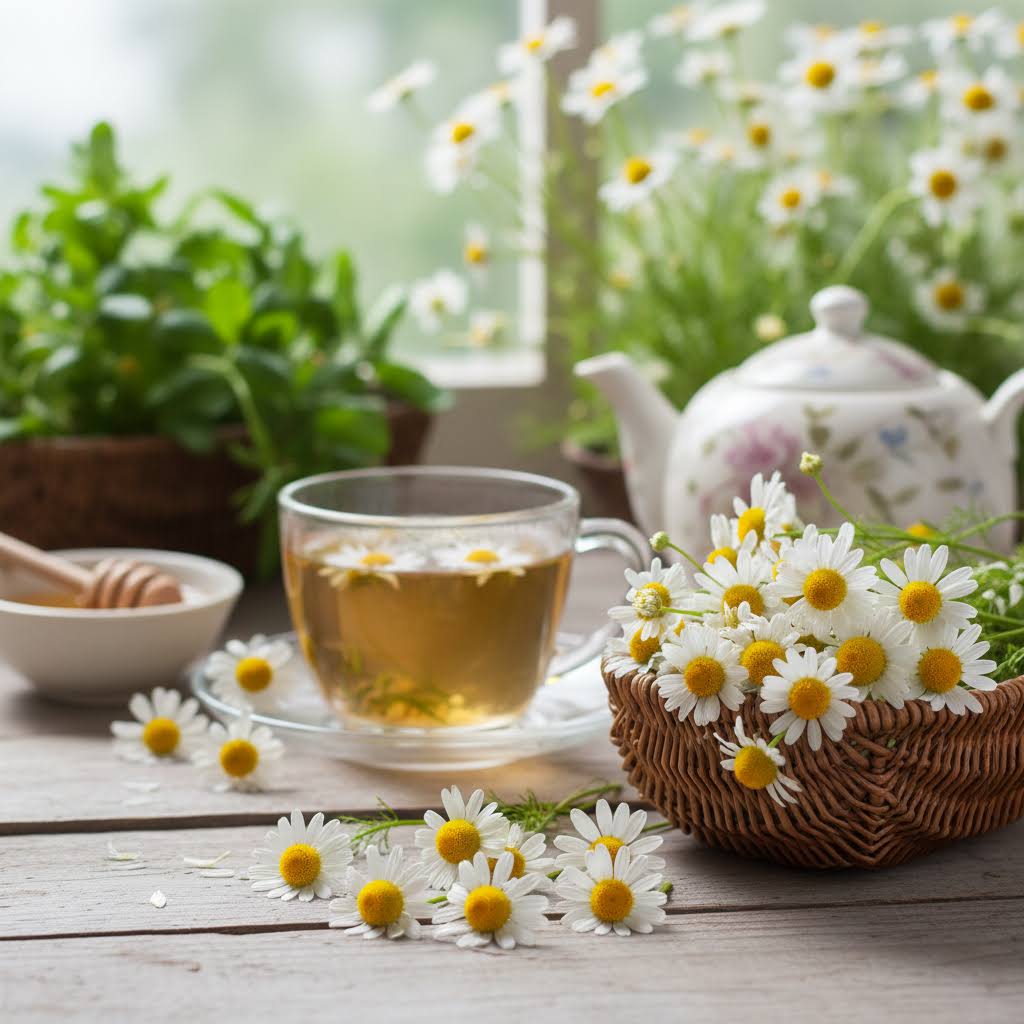 Chamomile is an aromatic herbaceous plant with white, daisy-like flowers that are harvested when in bloom.